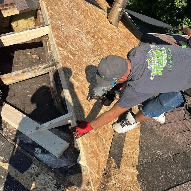 Besoin d’un couvreur qualifié dans les Laurentides ? Chez Team Toiture, nous avons plus de 20 ans d’expertise en charpenterie et en toiture au service des résidences et commerces de la région. Notre équipe spécialisée vous garantit des installations de toiture durables et de haute qualité, qu’il s’agisse de réfection, réparation ou installation de toiture en bardeaux d’asphalte, membrane élastomère ou TPO.